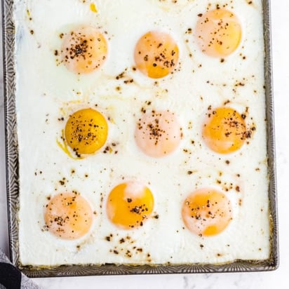 Sheet Pan Eggs Spaceships and Laser Beams Serves: 12 Save Share Ingredients (3) 12 large eggs non-stick cooking spray salt and pepper Directions Learn how to make this recipe at Spaceships and Laser Beams Go to Recipe Sharing options Close Share on Pinterest Share on Facebook Share on Twitter